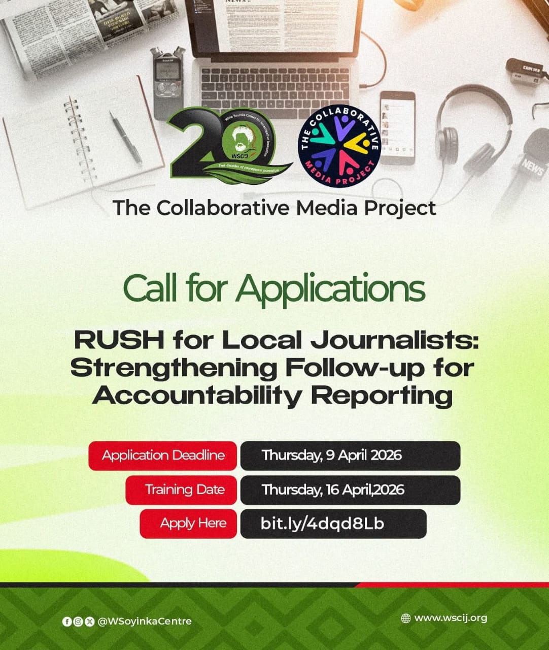 The Wole Soyinka Centre for Investigative Journalism has announced a call for applications for its latest training programme under the ...