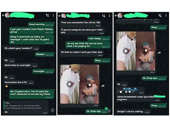 In a group called ‘MATCH MAKING,’ created on May 13, 2025, with 339 members as of August 20, 2025, an advertisement targeting teenagers was posted. Despite including a caveat for those under 18, the admin, who has Oluwaseun on her WhatsApp, was identified by Truecaller as Chibese Ilado, shared a 30-second video of three minors, between 7 and 11 years old, making out. The video, made in 2022, was reposted by Chibese on her group. This violates Section 23 of the Cybercrimes Act, which prohibits the procurement, production, transmission, possession, and distribution of child pornography in any data storage device or computer system. These acts are offences punishable by imprisonment for up to 10 years or a fine of up to ₦20,000,000, or both.