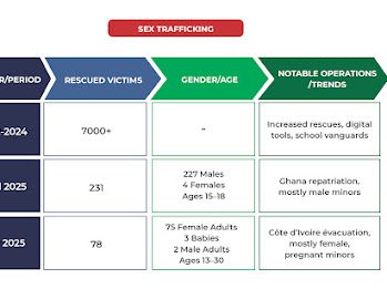 These data reveal a worrisome trend: minors are among the victims of sex trafficking in West Africa.