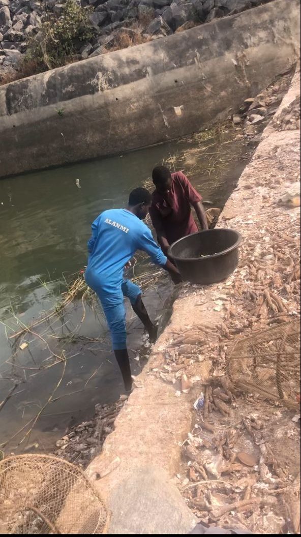 Corroborating with Mr. Aliu, 29-year-old Mr. John Festus, with 16 years of experience in fish farming, was seen at the riverside with other young boys trying to set the net for the evening catch. He said he operates on a large scale and has a large number of the workforce who work with him and also train to become experts in the fishing job. He said he only rears fish like catfish, tilapia, mudfish, and panla.
