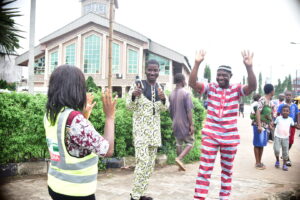 At Ringroad, Deaf citizens were seen expressing their excitements by raising two hands with the four fingers raised and the thumb crossing the palm, an expression that ‘Obaseki will complete two terms.’