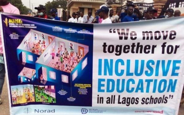 The Human Development Initiative, ActionAid Nigeria and Persons with Disability on Wednesday embarked on a peaceful walk to the Lagos State House of Assembly to demand a review of the policy on inclusive education.