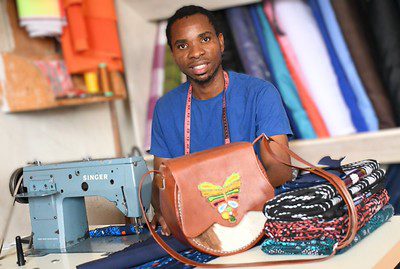At Kakuma Refugee Camp, Rodger had also begun building his own business, but faced a different problem. The young refugee from the Democratic Republic of Congo began sewing clothes and bags after arriving in Kakuma six years ago. He had a talent for tailoring, but customers were had to find.