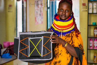 By combining Rodger’s tailoring skills with Nancy’s beadwork artistry, the two artisans created a unique product handmade bags decorated with intricate bead designs. Without the beads, the bag sold for 800 shillings ($6). Once decorated with beadwork, the bags sell for about 1,250 Kenyan shillings ($10) – a 40% premium.