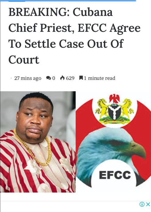 However, on May 3, 2024, a WhatsApp user circulated a message with the headline EFCC, and the Cubana Chief Priest agreed to settle out of court.